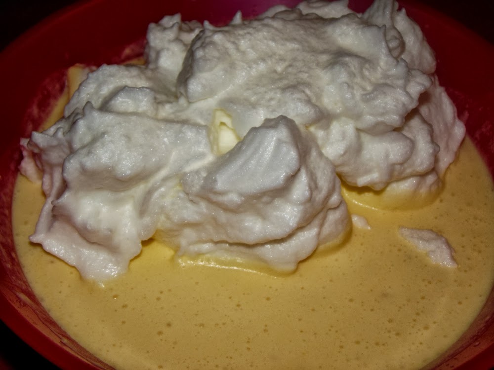 Adaugam albusurile peste compozitia de galbenusuri si le incorporam usor, prin miscari circulare, cu o lingura de lemn.